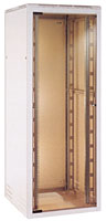 1 bati en acier épaisseur 2mm, 1 toit ajouré, 4 montants 19" mobiles acier épaisseur 2mm, 4 montants passe-câbles largeur 50mm, 2 panneaux latéraux ajourés verrouillables, 1 porte arrière hauteur totale verrouillable, ouverture à gauche ou à droite.