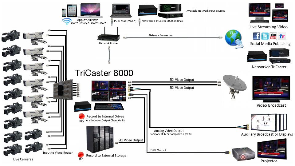 8 entrées simultanées multi-formats en HD : entrées composantes et HD-SDI